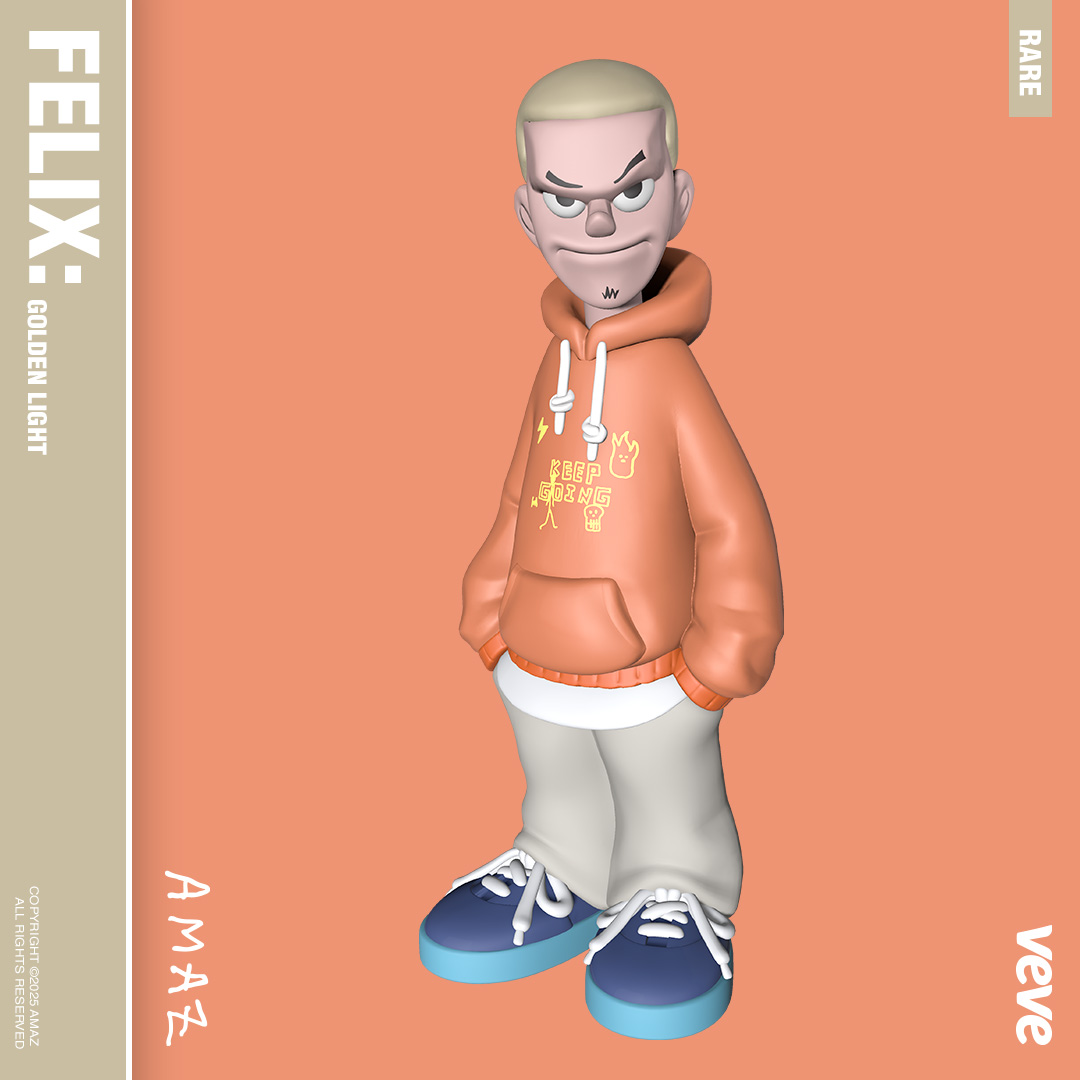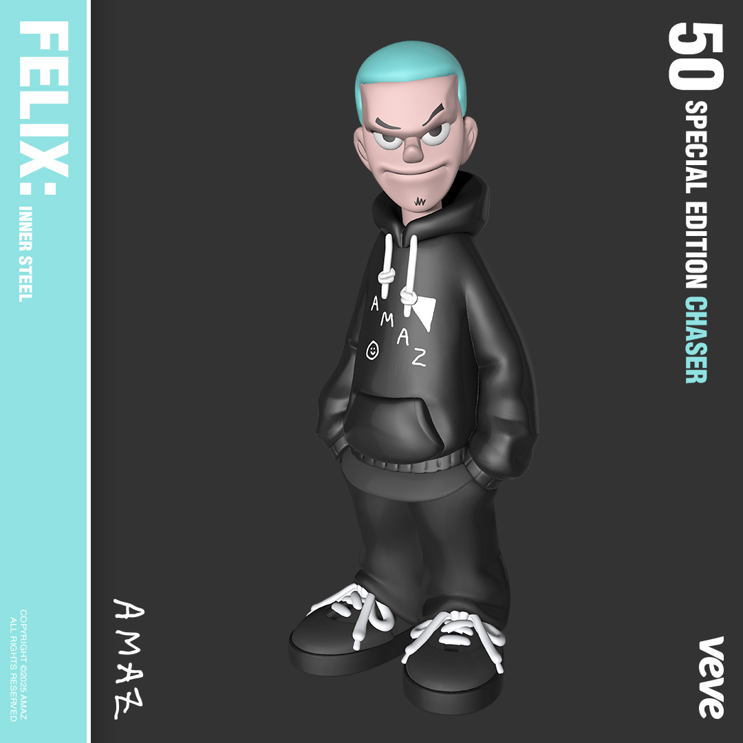 Felix, a character from AMAZ’s “Keep Going” series, embodies the determination and emotions the artist experienced when he left his stable job to pursue life as an artist. Born during a time filled with both fear and excitement, Felix symbolizes the resolve to keep moving forward and holds a special place in the artist’s heart. AMAZ: Felix Series 1 – dropping in blindbox waitlist format on Sun, 10 Aug at 8 AM PT | Mon, 11 Aug at 12 AM KST.