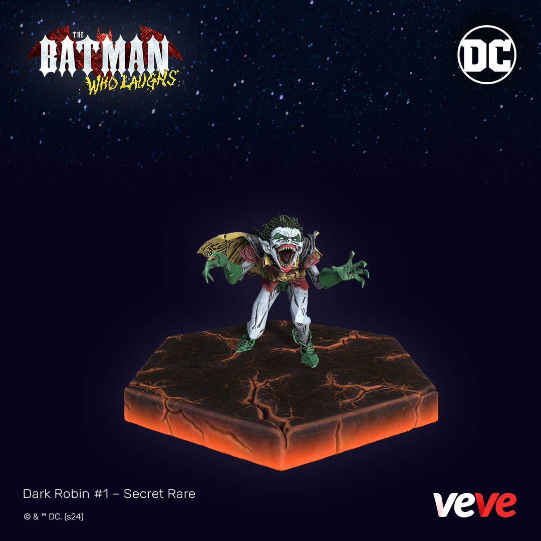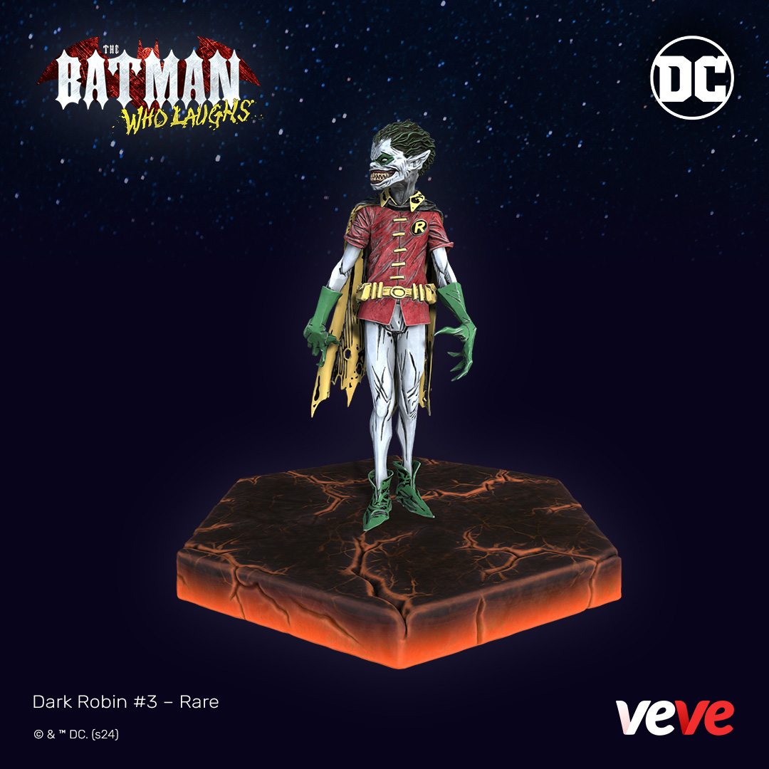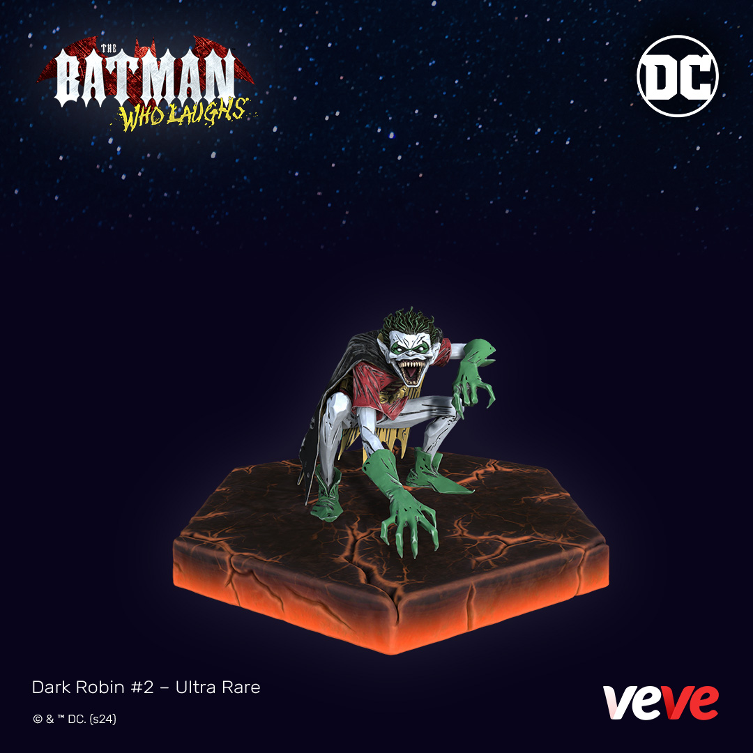 This premium digital collectible is a spine-chilling addition to any collector’s display, encapsulating the grim and unsettling nature of the instantly iconic Batman Who Laughs.