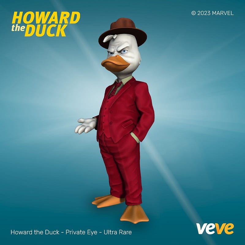 Howard’s an anthropomorphic duck from another planet. Unfortunately, that doesn’t grant him any super heroic abilities. He lacks flight and can’t shoot anything out his eyes but he does possess a deep level of the seldom-practiced art of Quack-Fu, which makes him pretty solid when it comes down to a street fight. This must-have digital collectible features Howard the Duck in premium digital format.