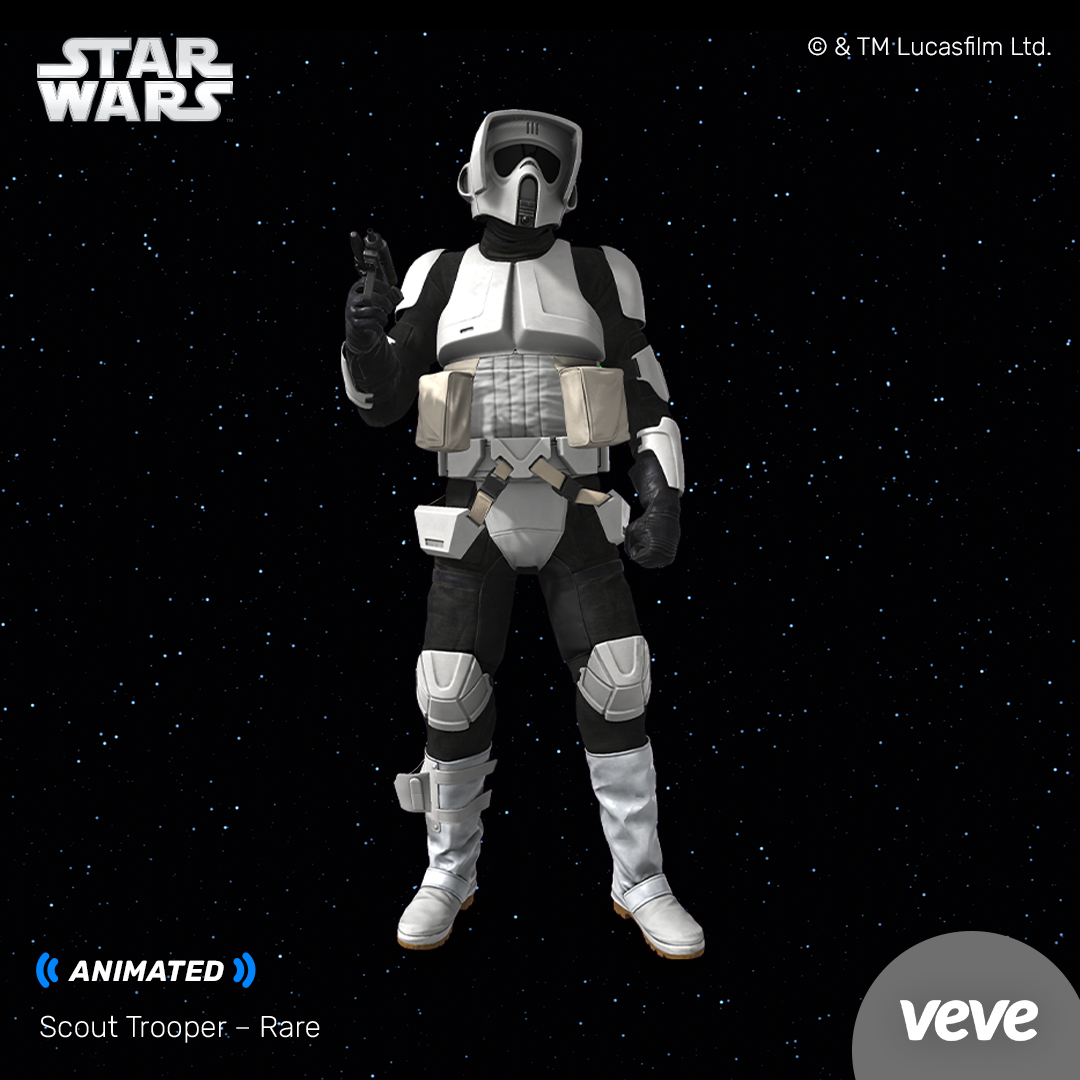 This Scout Trooper digital collectible may include possible future interactivity with Star Wars™ Vehicles Series 3 — Aratech 74-Z Speeder Bike in VeVeVerse environments.