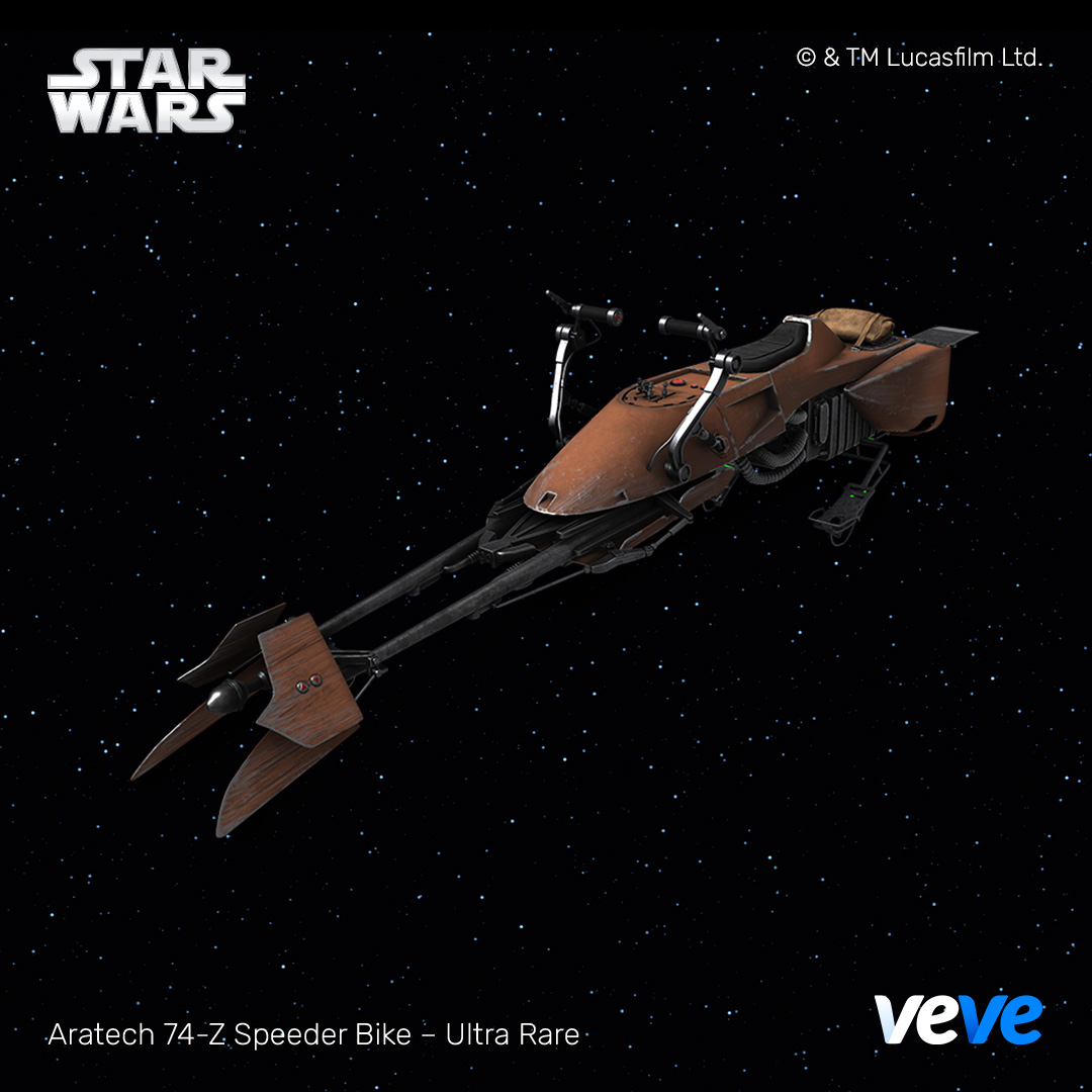 The Aratech 74-Z Speeder Bike is a mainstay of Imperial forces. It is capable of high speed travel and requires skill and fast reflexes to drive. The 74-Z saw service during the Clone Wars and remained heavily in use by the Empire during the Galactic Civil War.