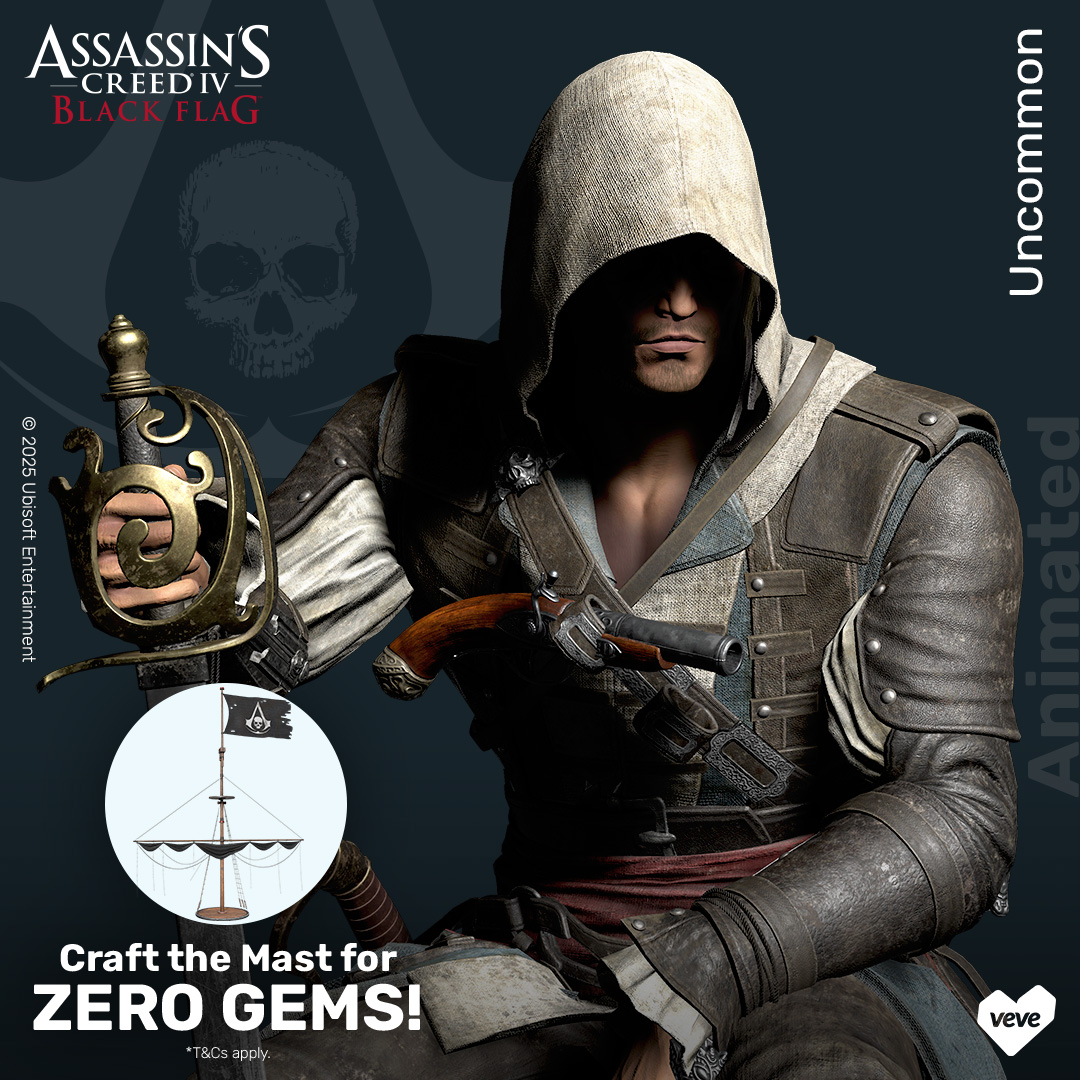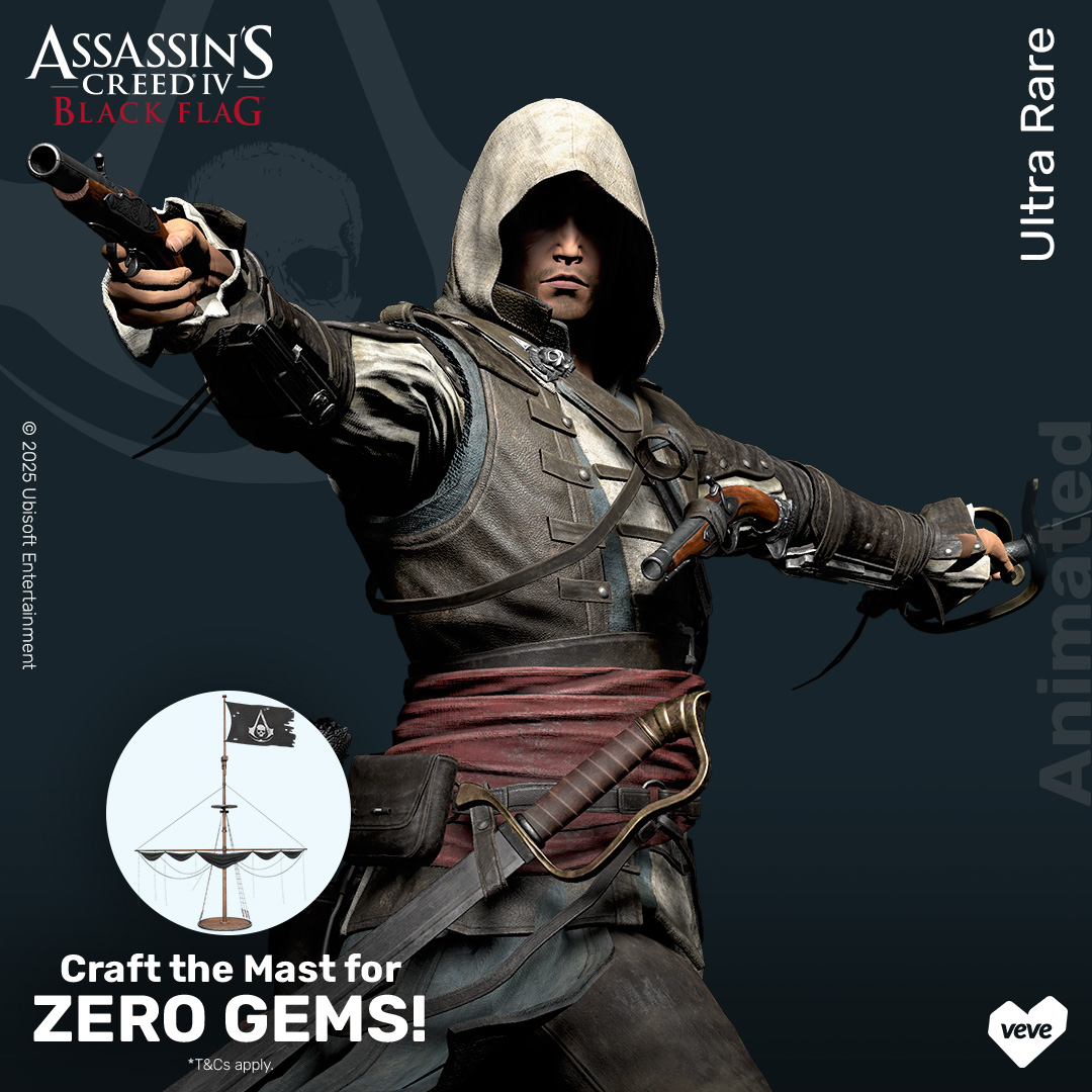 To be eligible to craft the Edward – Mast digital collectible, users will need to hold either Edward – Dual Stance, Edward – Pirate’s Rest, or Edward – Reckless Edge digital collectible from the Assassin’s Creed – Edward series. No digital collectibles will be burned during the crafting process with store purchases eligible only. It’s first in/first served with crafting starting 6 Sept 2025 at 12 PM PT and closing 6 December 2025 at 11:59 PM PT. All remaining Edward – Mast digital collectibles will be burned after this date.