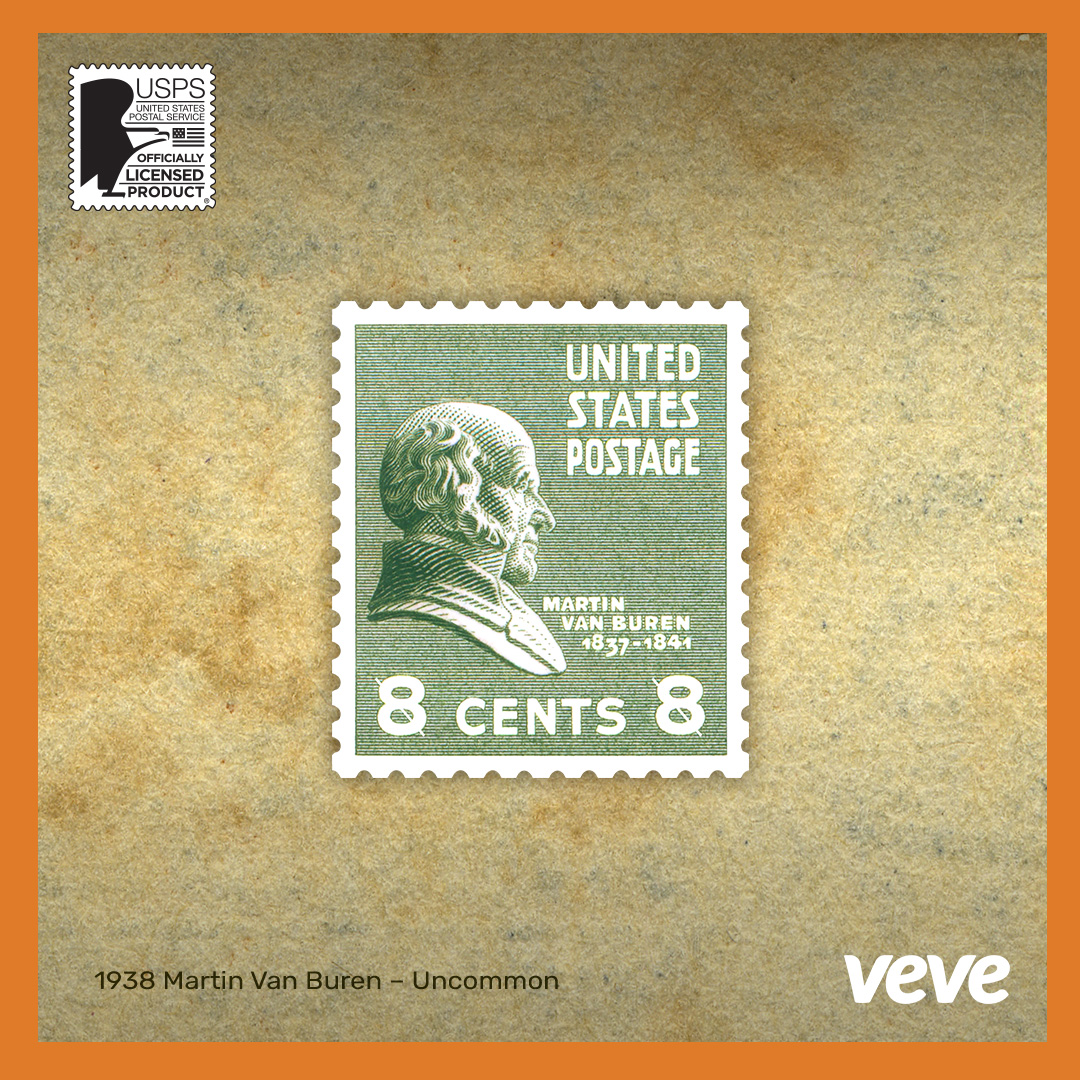 The Martin Van Buren stamp art features the bust profile of the eighth U.S. president, who served from 1837-1841. Van Buren helped establish the independent federal treasury system in 1840.