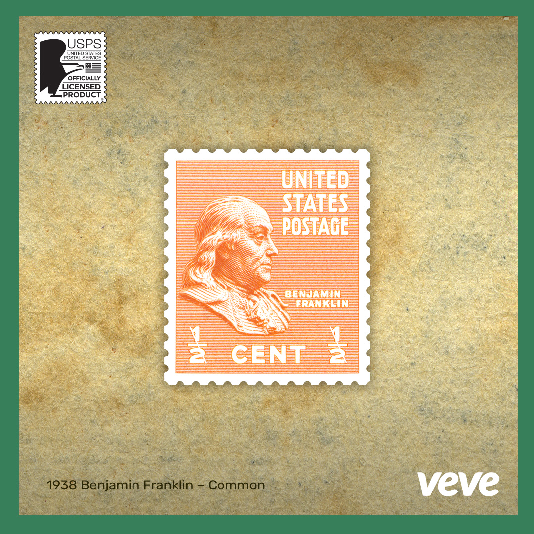 The Benjamin Franklin stamp art features the bust profile of the inaugural postmaster general of the United States Post Office.