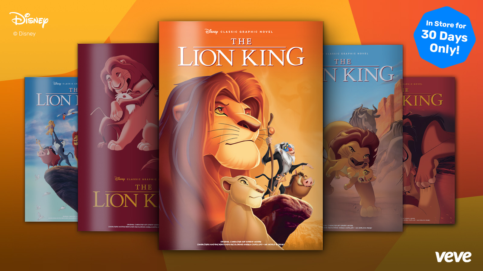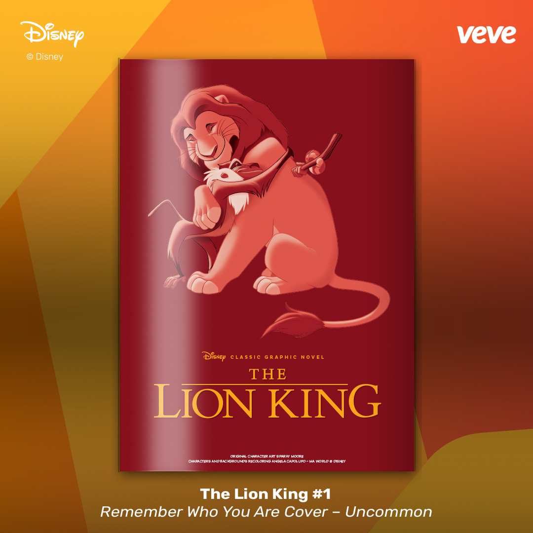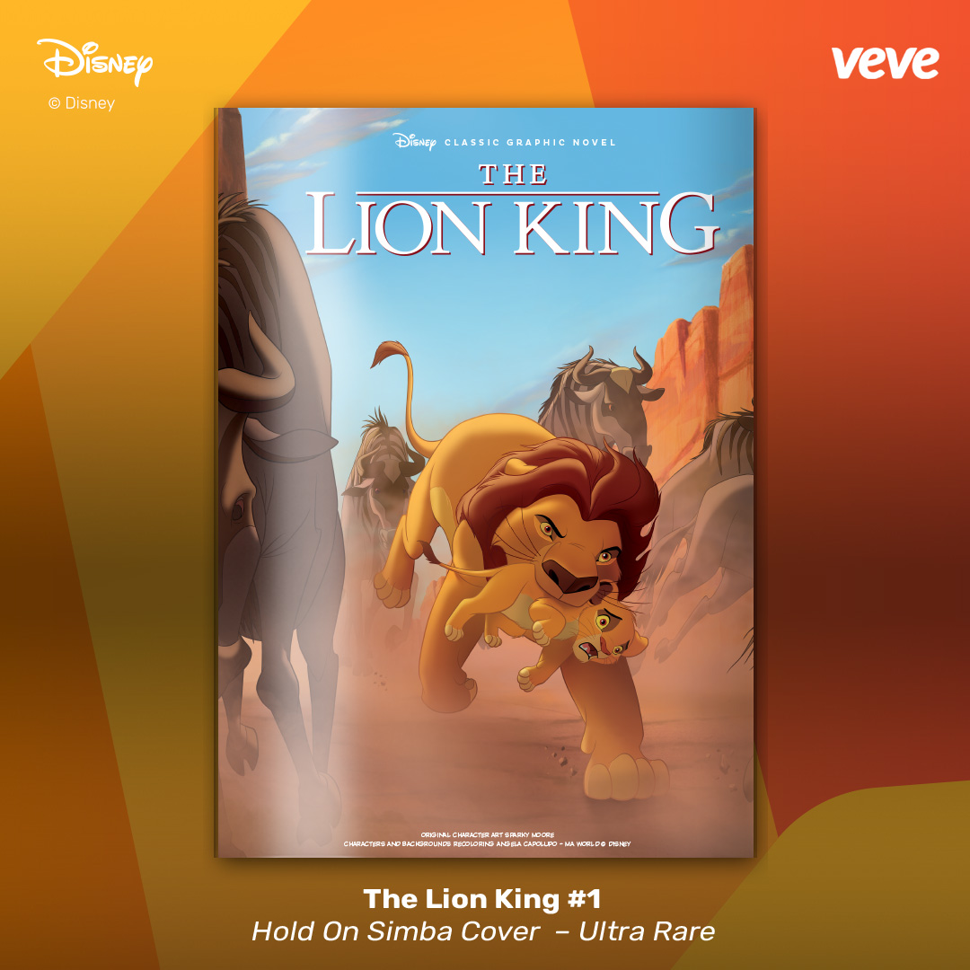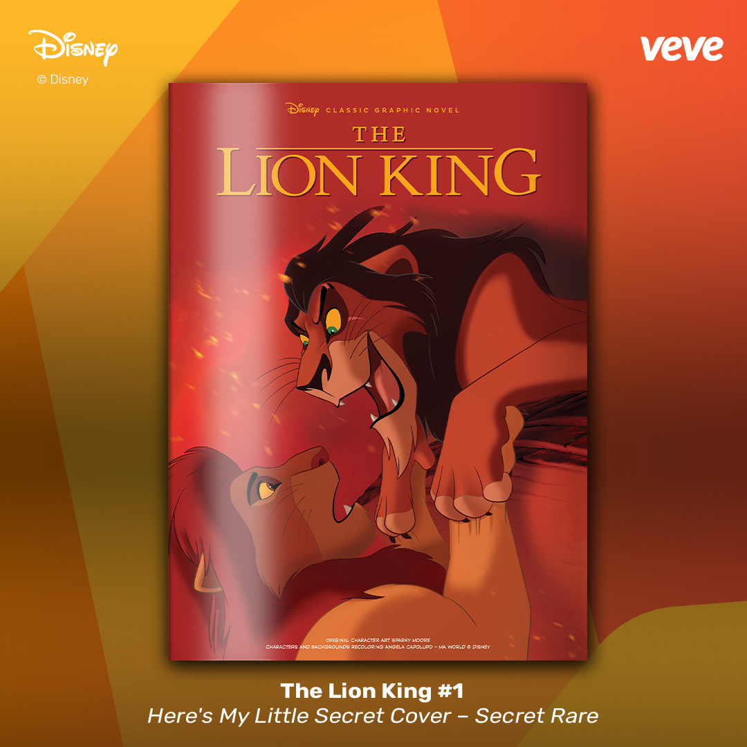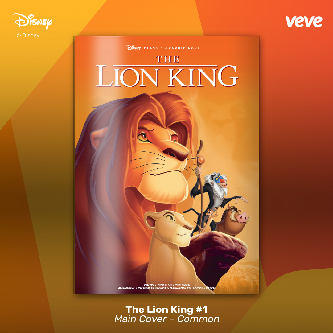 The next offering in VeVe’s digital comic line-up continues with another new-release digital collectible comic from Disney — The Lion King #1. Fully readable, with five covers in blind box format, these comics feature original character art by Sparky Moore and recolourings by Angela Capolupo – MA World.