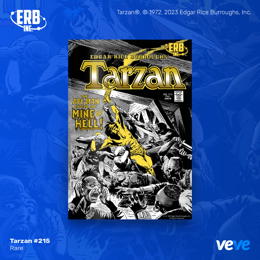 The next offering in VeVe’s comic line-up continues with an iconic issue from Edgar Rice Burroughs, Inc. — Tarzan of the Apes #215! This extremely limited edition digital comic is fully readable, with five cover rarities in blind box format.