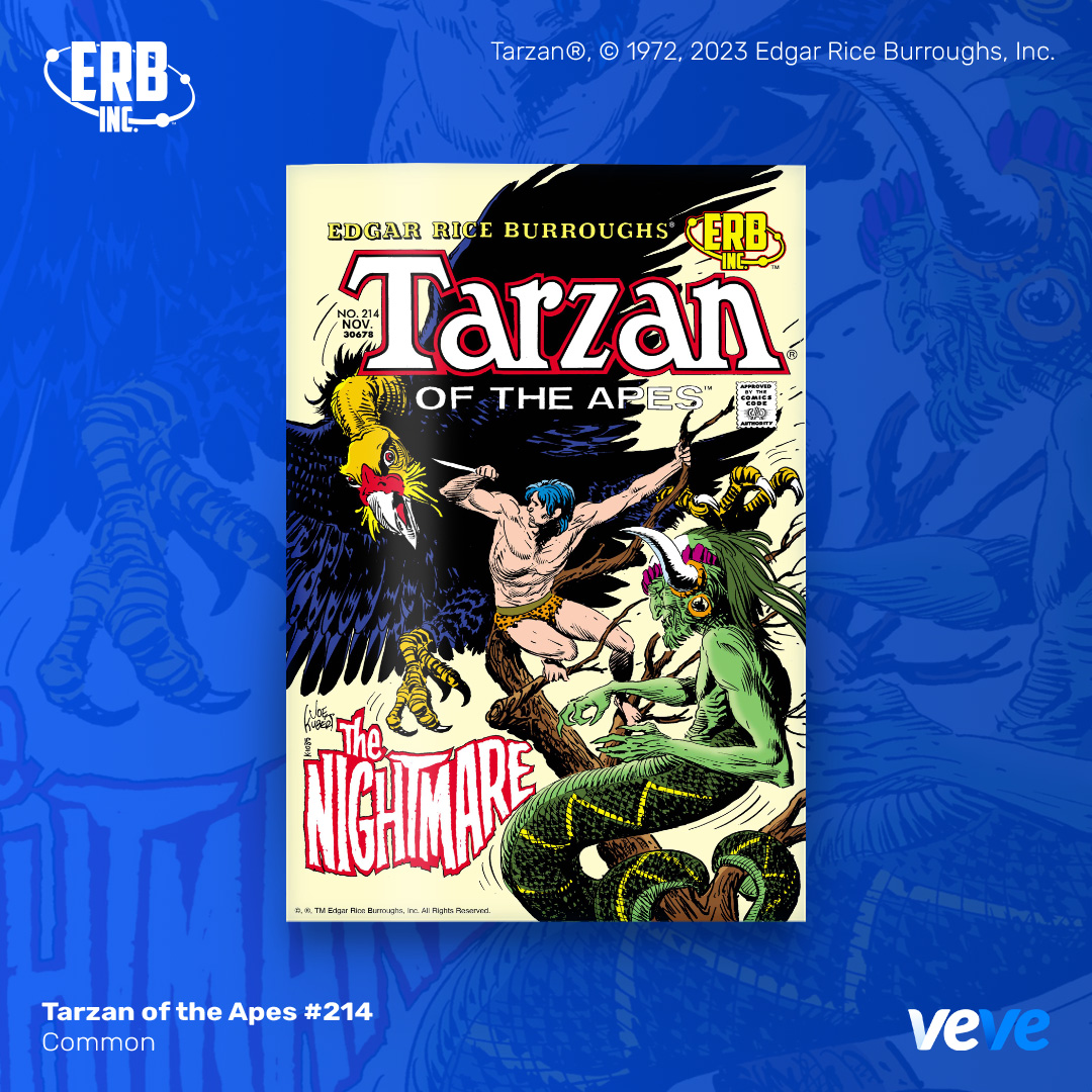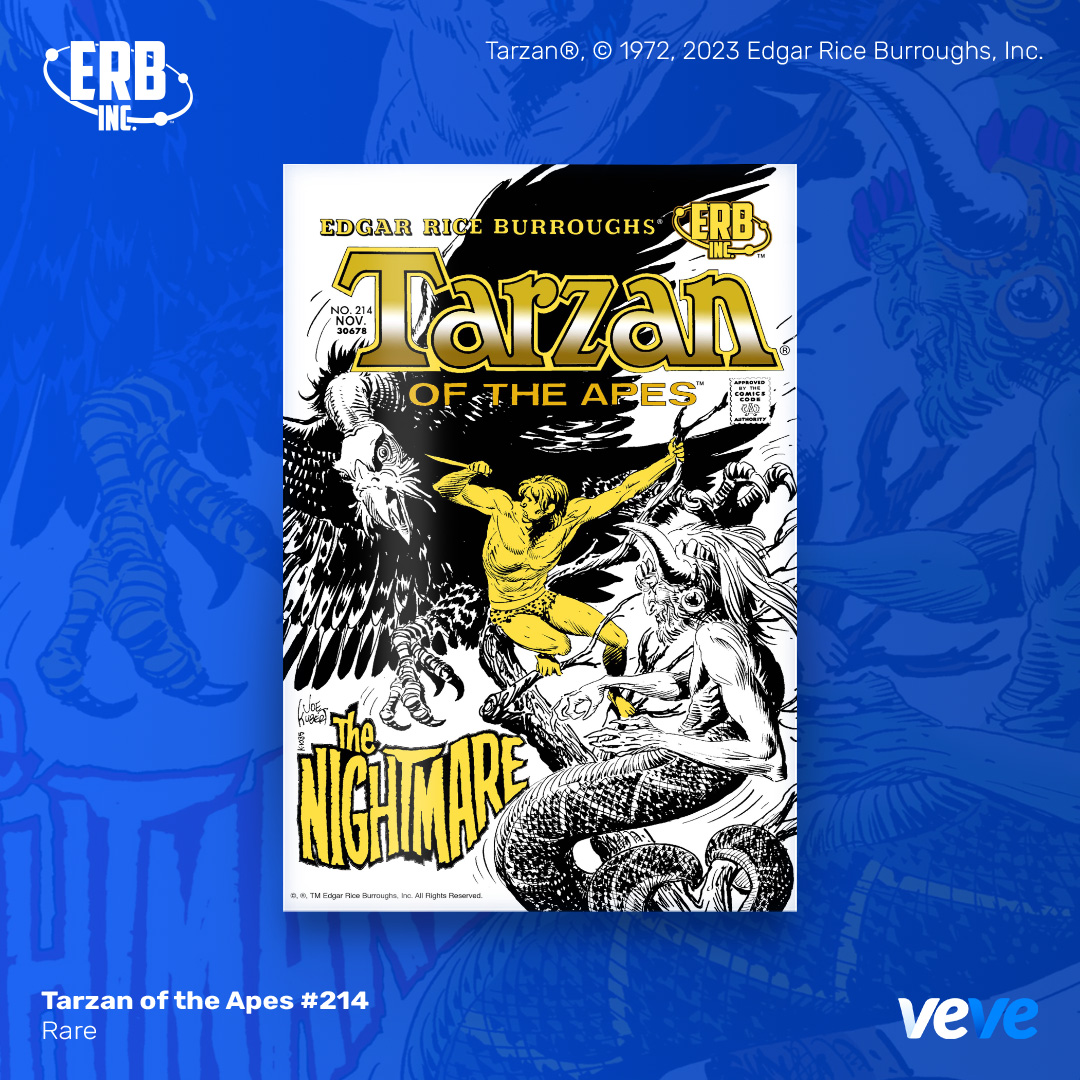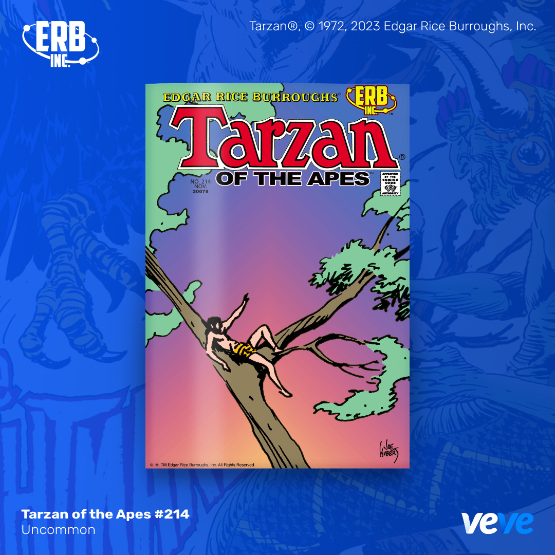 The next offering in VeVe’s comic line-up continues with an iconic issue from Edgar Rice Burroughs, Inc. — Tarzan of the Apes #214! This extremely limited edition digital comic is fully readable, with five cover rarities in blind box format.
