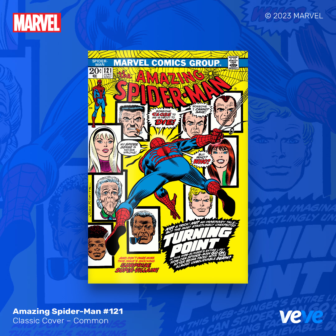 The next offering in VeVe’s digital comic line-up continues with another iconic comic from Amazing Spider-Man #121! Super Limited Edition, fully readable, with five variant covers in blind box format.