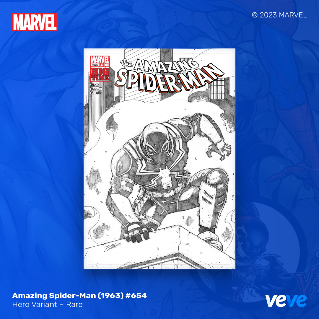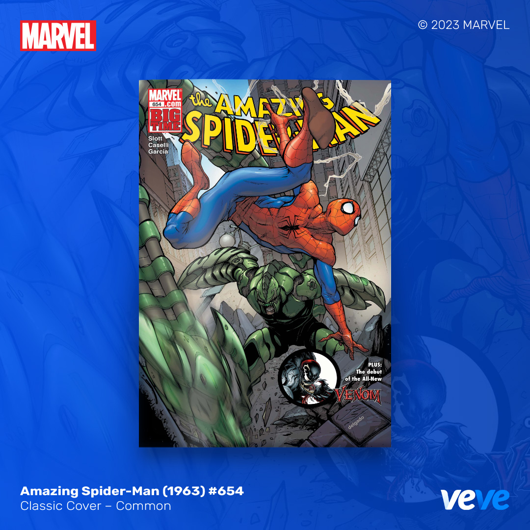 The next offering in VeVe’s digital comic line-up continues with another iconic comic from Marvel – Amazing Spider-Man (1963) #654! Limited Edition, fully readable, with five variant covers in blind box Waitlist Drop format.