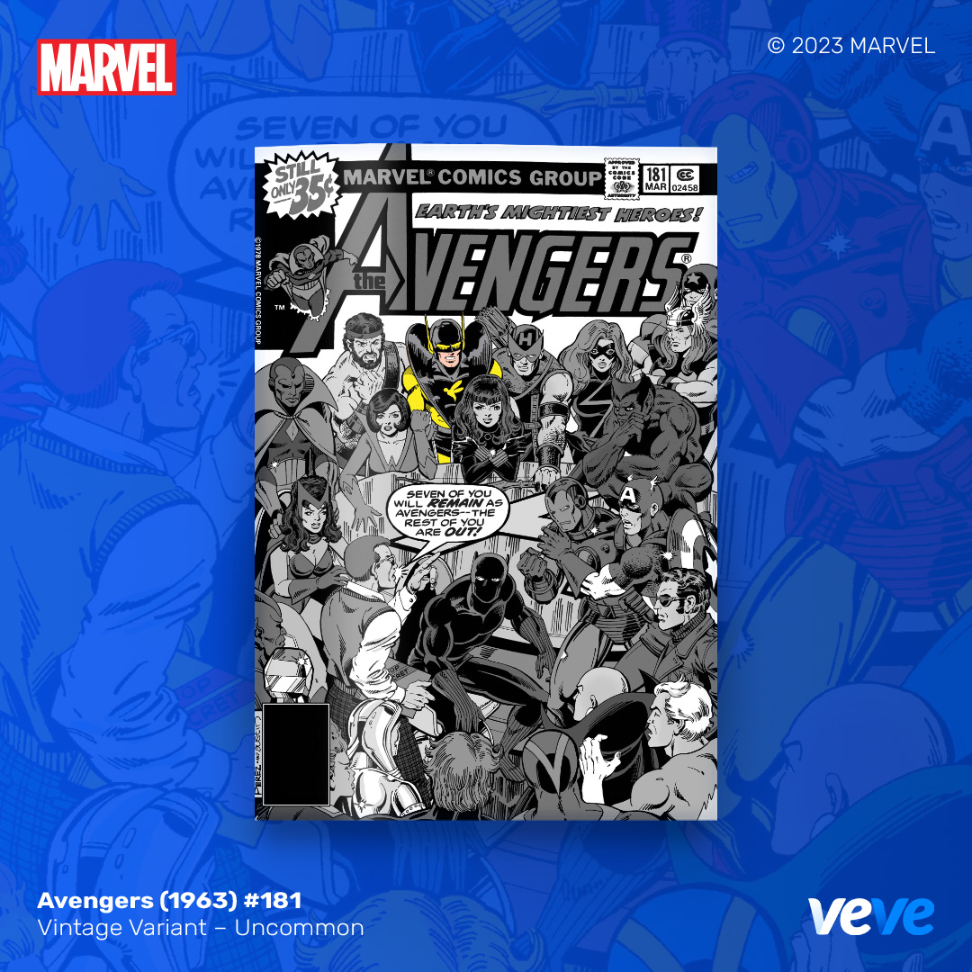 The next offering in VeVe’s digital comic line-up continues with another iconic comic from Marvel — Avengers (1963) #181! Fully readable, with five variant covers in blind box format.