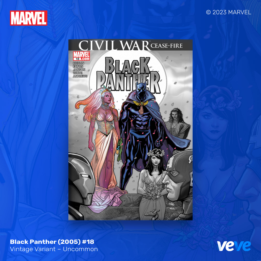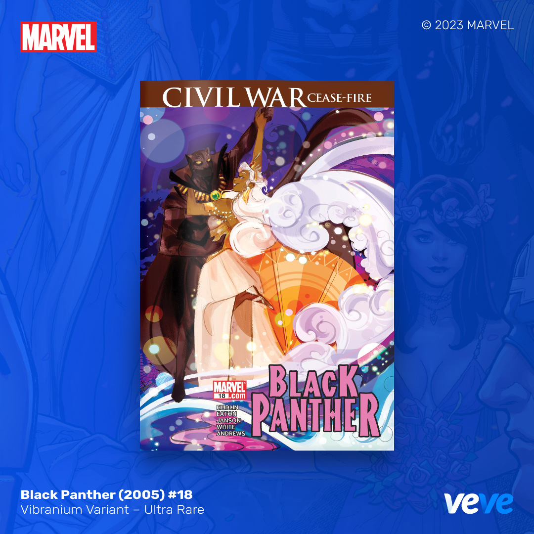 The next offering in VeVe’s digital comic line-up continues with another iconic comic from Marvel – Black Panther (2005) #18! Limited Edition, fully readable, with five variant covers in blind box Waitlist Drop format.