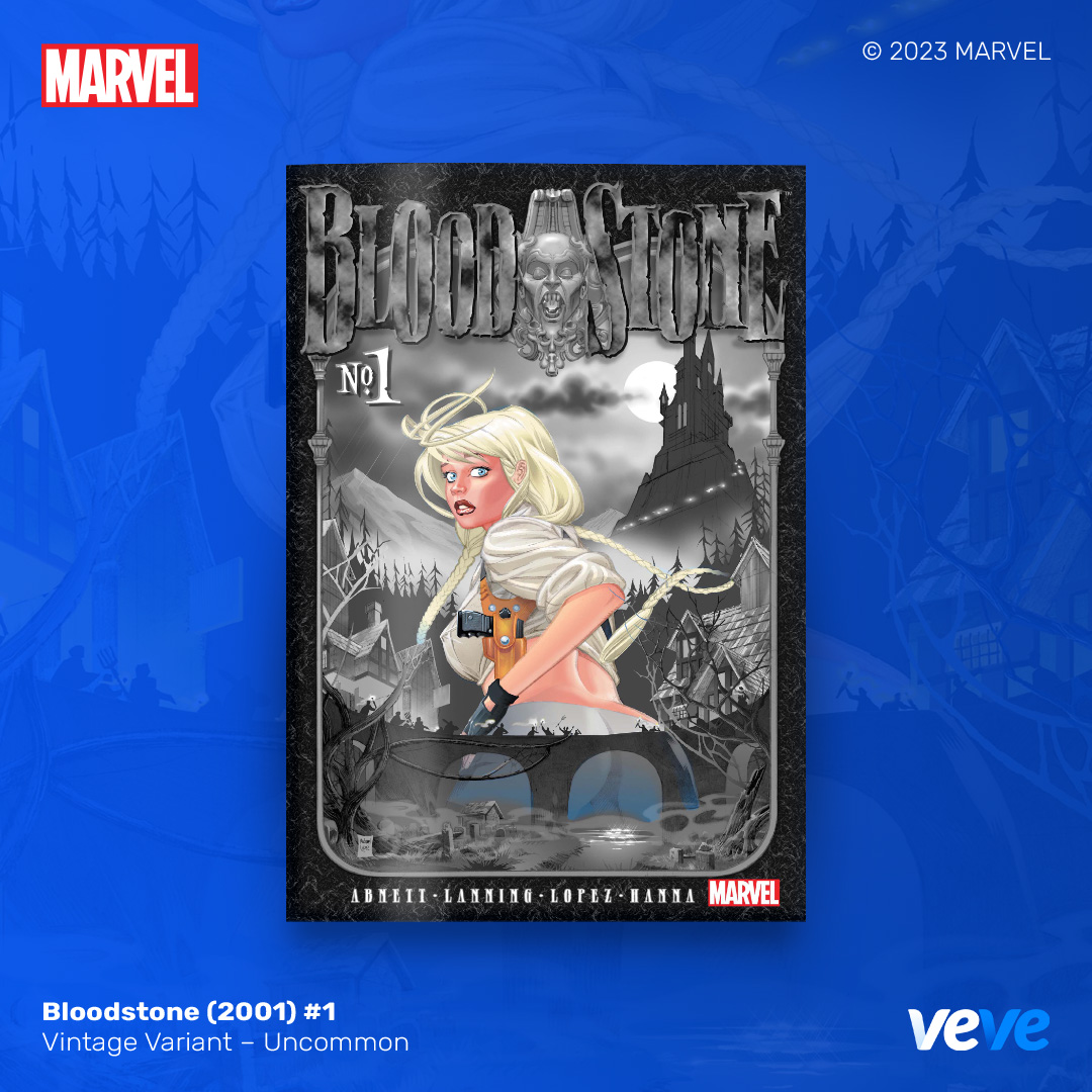 The next offering in VeVe’s digital comic line-up continues with another iconic comic from Marvel – Bloodstone (2001) #1! Limited Edition, fully readable, with five variant covers in blind box Waitlist Drop format.