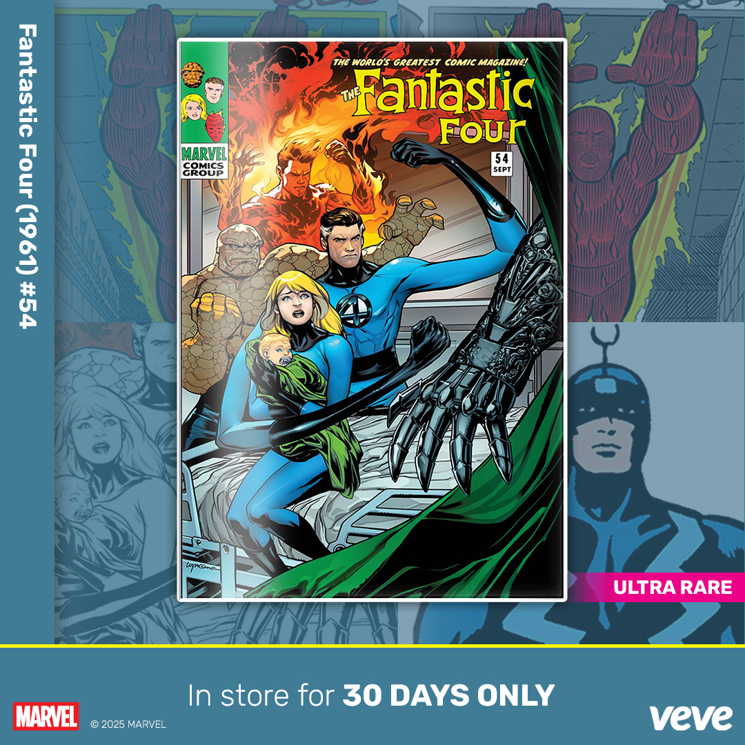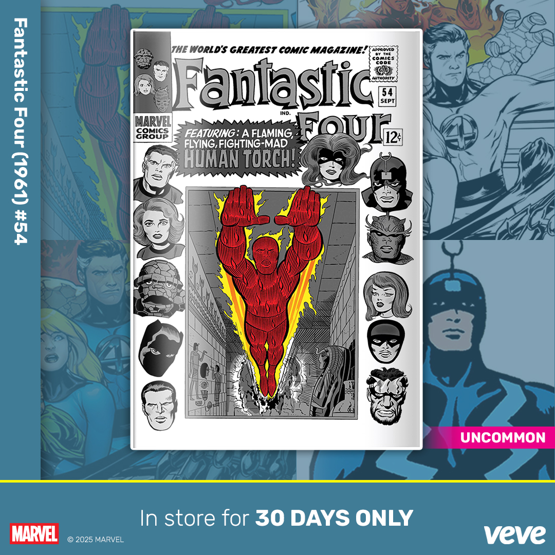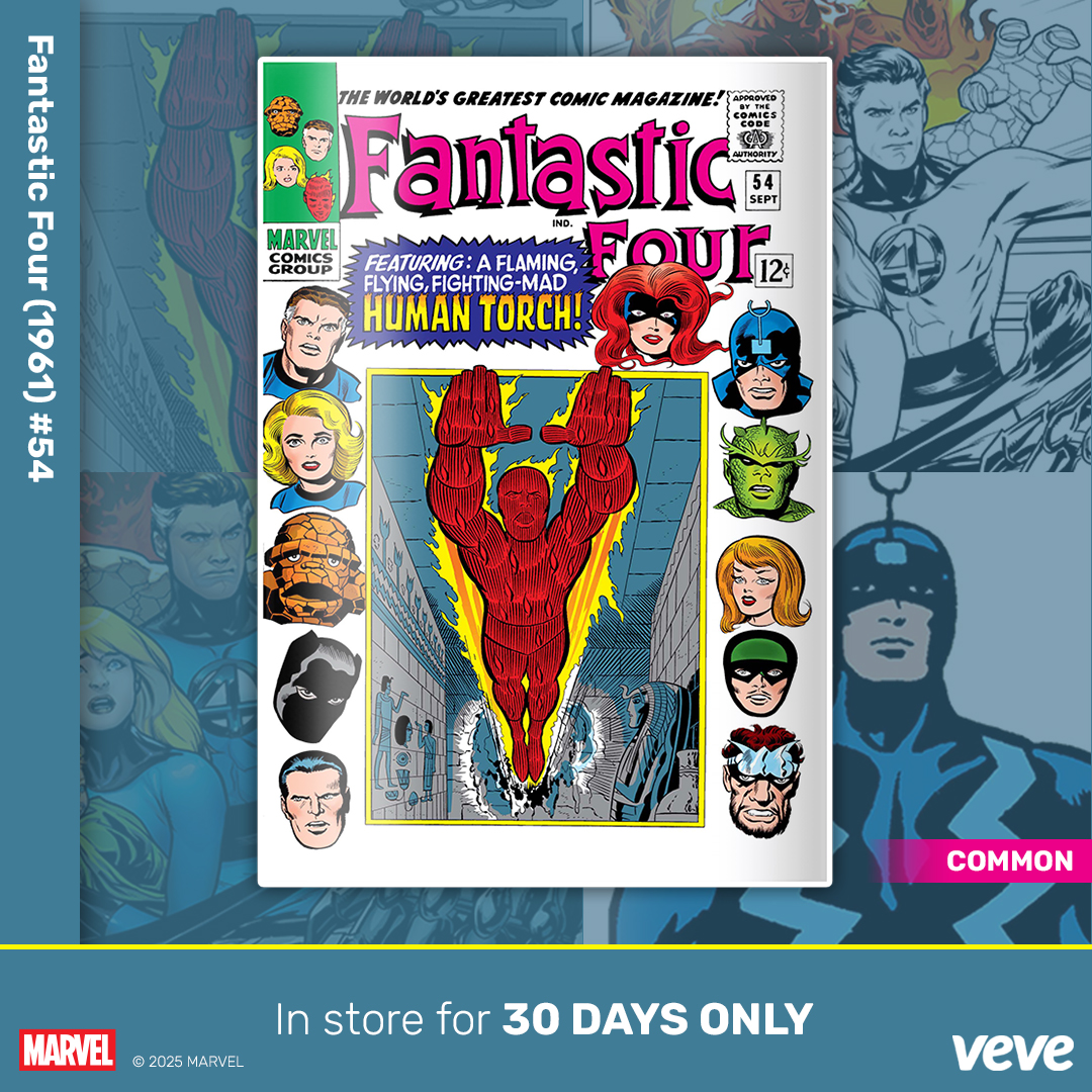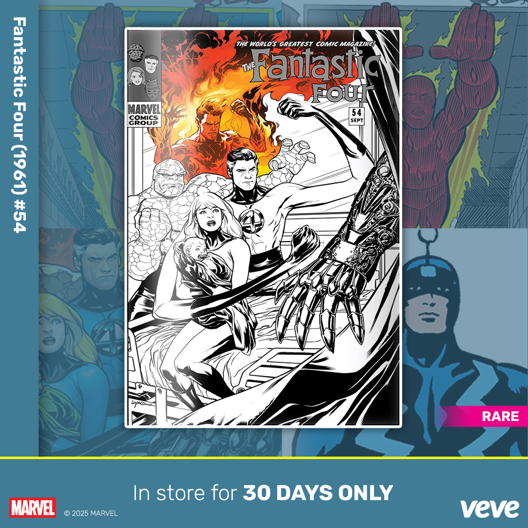 The next offering in VeVe’s digital comic line-up continues with another iconic comic from Marvel, Fantastic Four (1961) #54 drops on VeVe in blind box waitlist format with 5 cover variants on Thur Sept 18 at 8 AM PT.