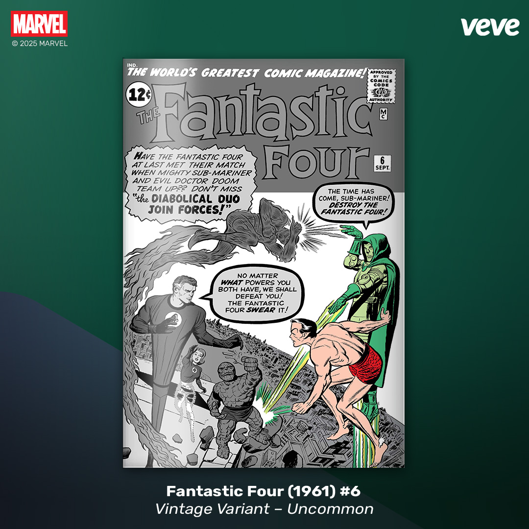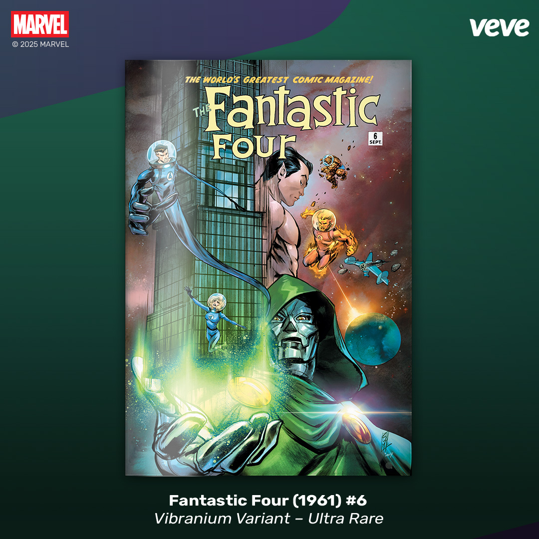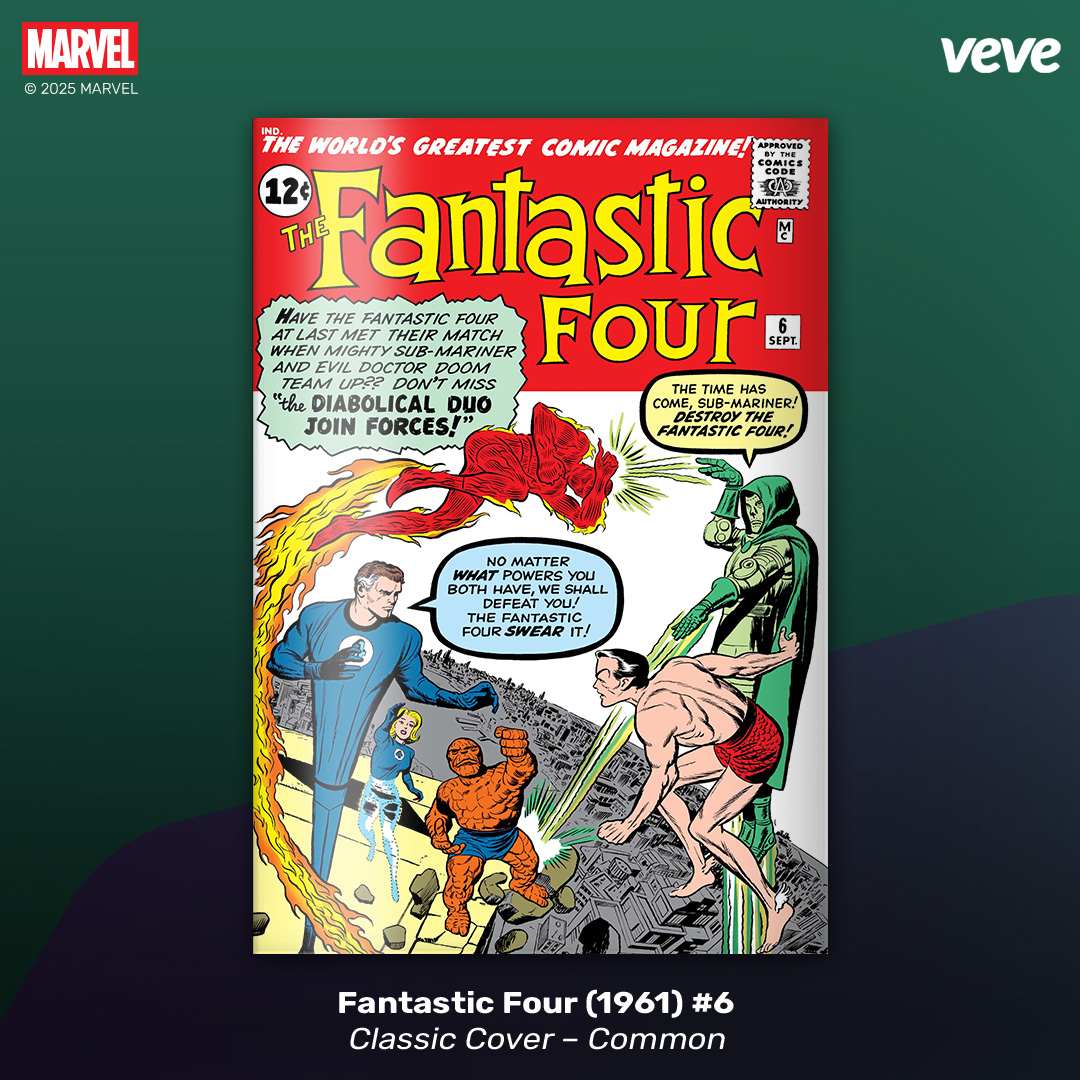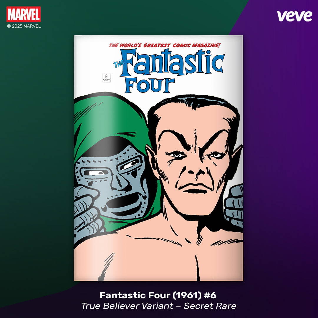 The next offering in VeVe’s digital comic line-up continues with another iconic comic from Marvel – Fantastic Four (1961) #6. Limited edition, fully readable, with five variant covers in blind box Waitlist Drop format.