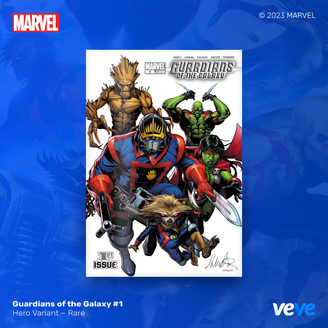 The next offering in VeVe’s digital comic line-up continues with another iconic comic from Marvel — Guardians of the Galaxy (2008) #1! Fully readable, with five variant covers in blind box format.