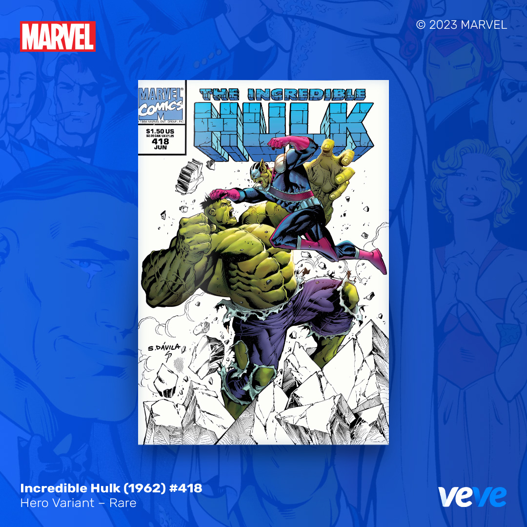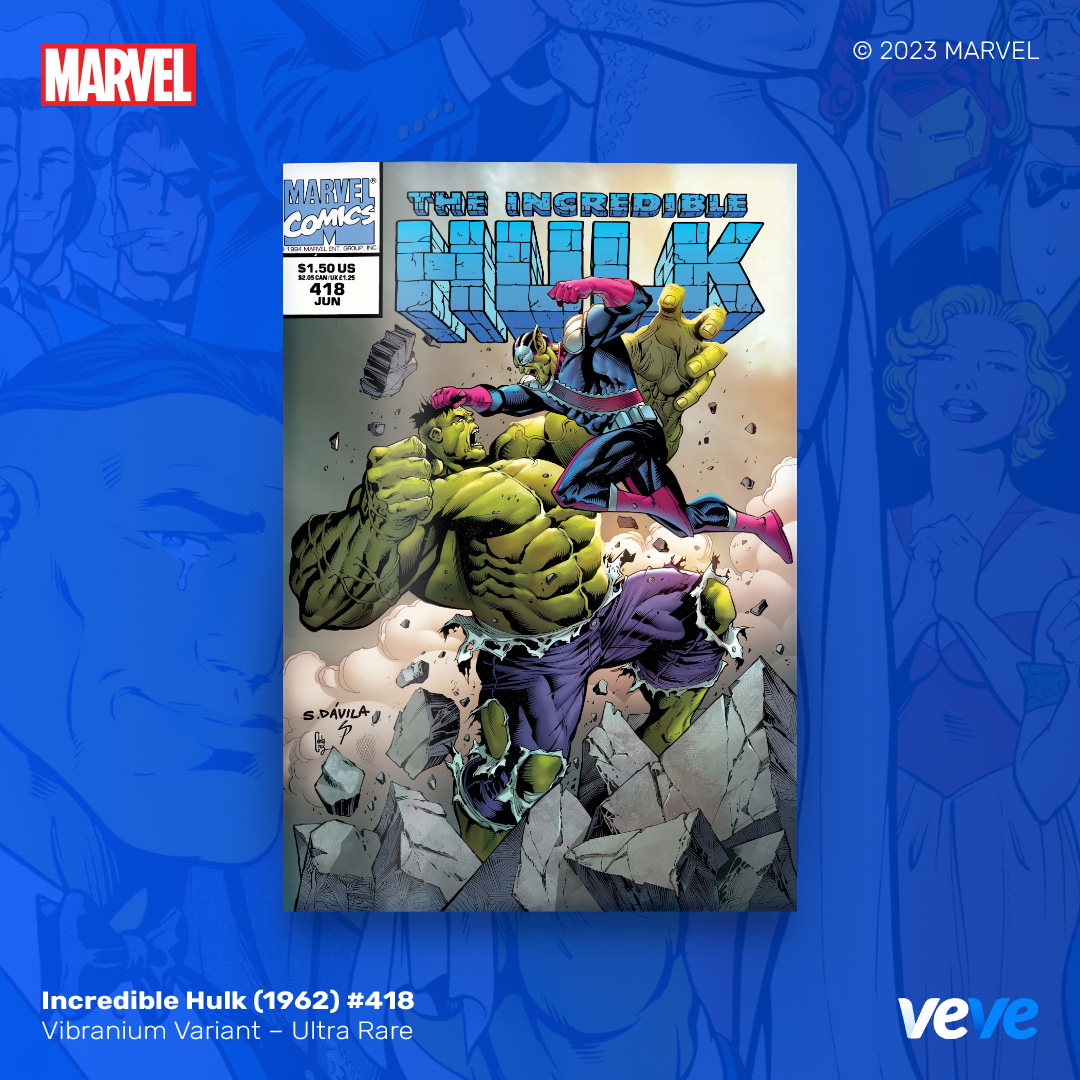 The next offering in VeVe’s digital comic line-up continues with another iconic comic from Marvel – Incredible Hulk (1962) #418! Limited Edition, fully readable, with five variant covers in blind box Waitlist Drop format.