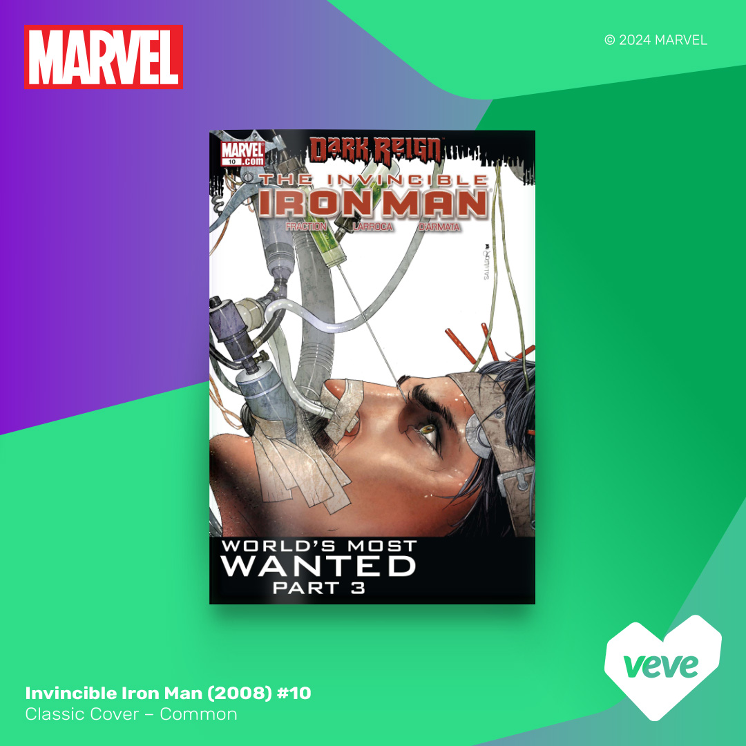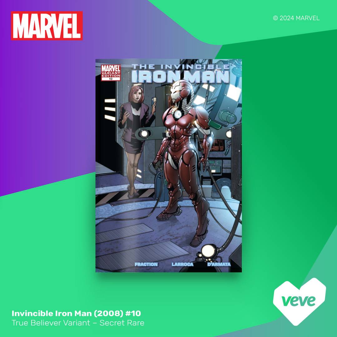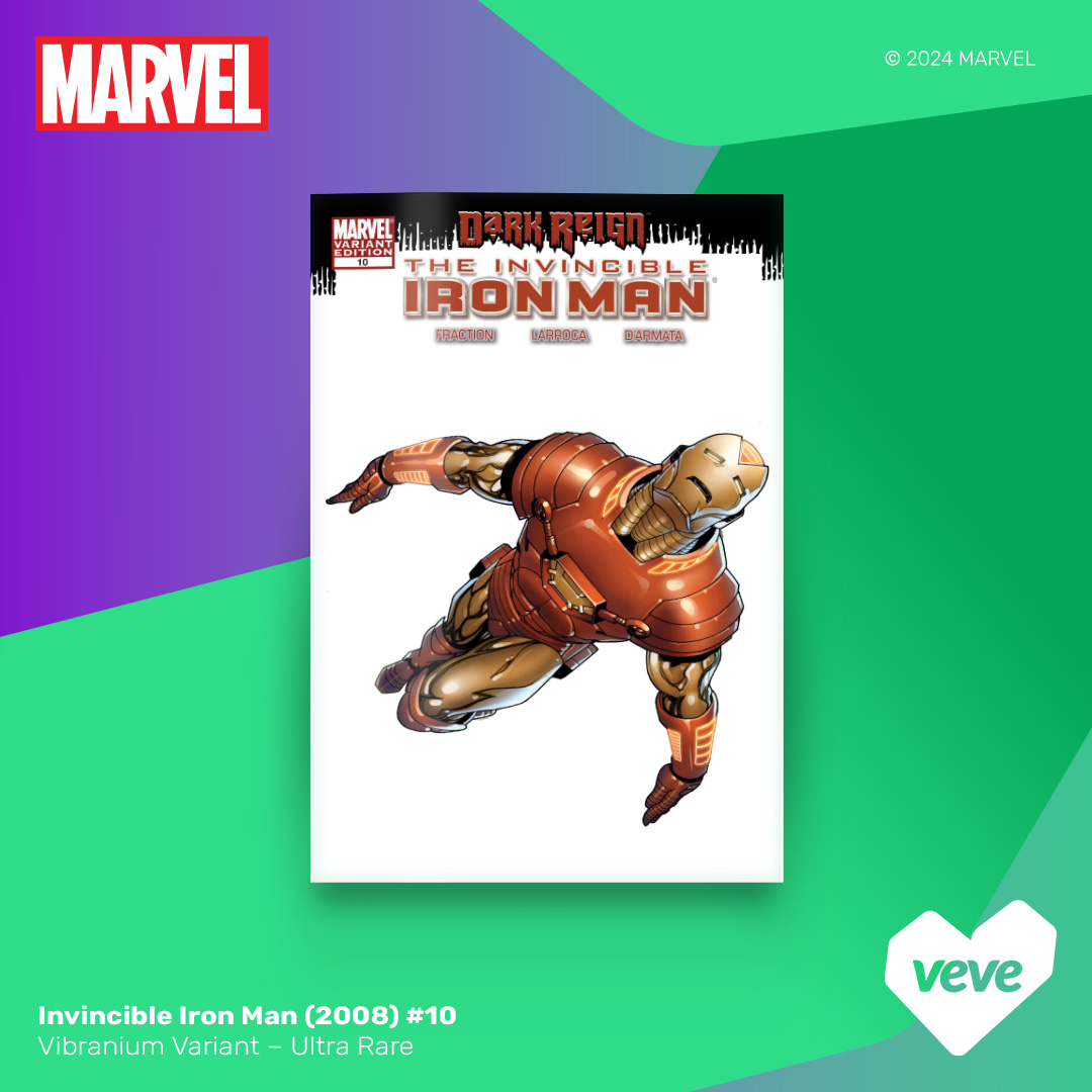 The next offering in VeVe’s digital comic line-up continues with another iconic comic from Marvel – Invincible Iron Man (2008) #10: limited edition, fully readable, with five variant covers in blind box Waitlist Drop format.