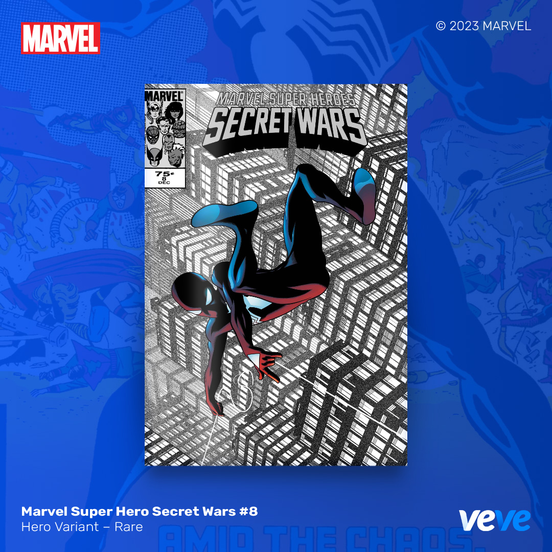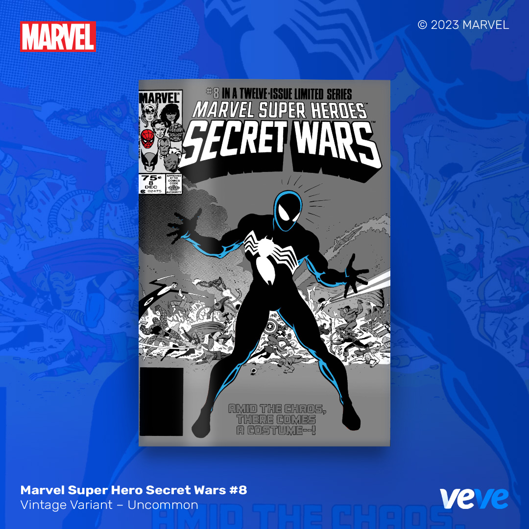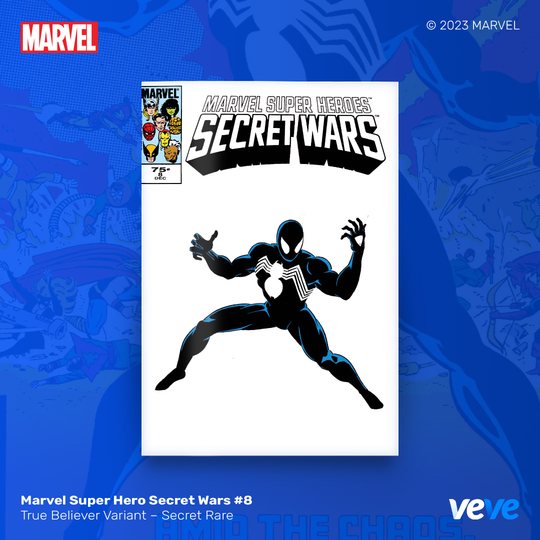 The next offering in VeVe’s digital comic line-up continues with another iconic comic from Marvel – Marvel Super Hero Secret Wars #8! Limited Edition, fully readable, with five variant covers in blind box Waitlist Drop format.