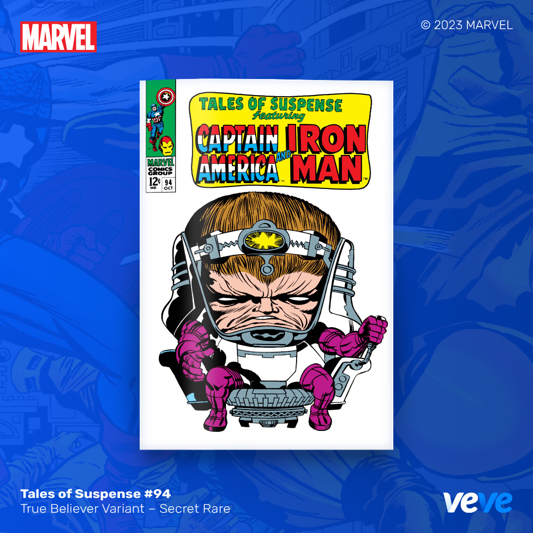 The next offering in VeVe’s digital comic line-up continues with another iconic comic from Marvel — Tales of Suspense #94! Fully readable, with five variant covers in blind box format.