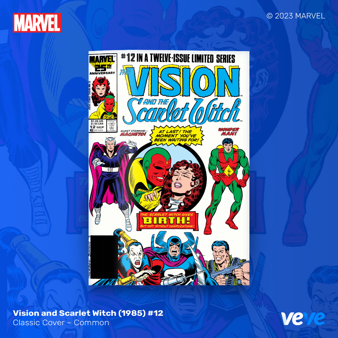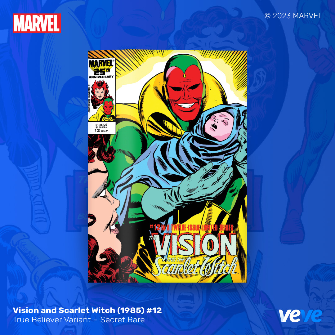 The next offering in VeVe’s digital comic line-up continues with another iconic comic from Vision and Scarlet Witch (1985) #12! Super Limited Edition, fully readable, with five variant covers in blind box format