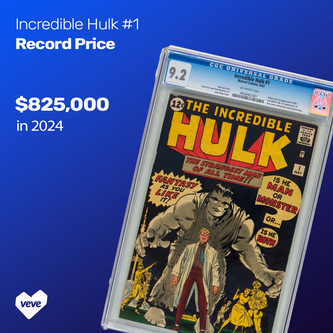 A CGC 9.2 copy of Incredible Hulk #1 sold for $825,000 in January 2024, setting the highest known price for the character’s debut. This sale surpassed the previous record of $490,000 for a CGC 9.0 copy in 2021. With no known copies graded higher than 9.2, this issue now ranks among the top-tier Marvel first appearances on the market.