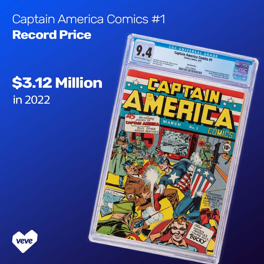 A CGC 9.4 copy of Captain America Comics #1 sold for $3.12 million in 2022, setting a franchise record and landing near the top of all-time comic sales. That copy came from the San Francisco pedigree collection and remains the highest-graded known example.