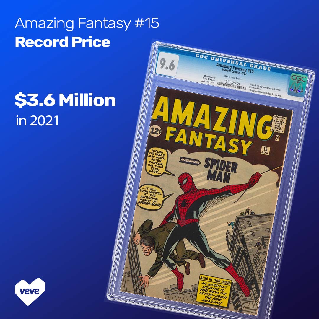 A CGC 9.6 copy of Amazing Fantasy #15 sold for $3.6 million in 2021, making it the most expensive Marvel comic ever sold. That particular copy is one of only four known in such high grade, with none graded higher. Lower-grade versions sell for a fraction of that price, showing how condition multiplies value. Copies in the 3.0 to 5.0 range often sell between $30,000 and $80,000, depending on market timing and demand.