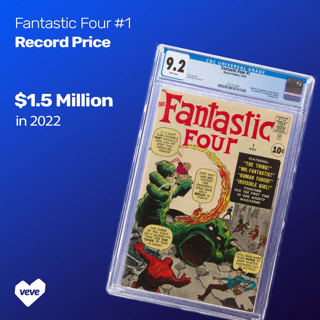 A CGC 9.2 copy of Fantastic Four #1 sold for $1.5 million in 2022 at Heritage Auctions, marking the highest price ever paid for the title. This was the first time the issue crossed the million-dollar threshold, reinforcing its place as one of the most important Silver Age comics on the market.