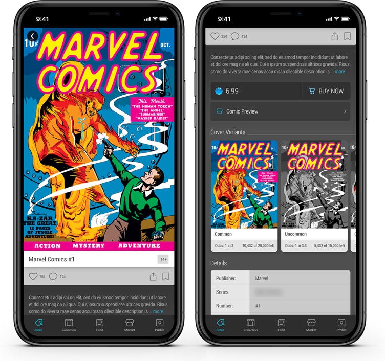 VeVe digital comics will be offered in the same way, and in most cases, VeVe digital comics will be released with up to five cover variants, each of which is associated with a different rarity (Common, Uncommon, Rare, Ultra Rare, and Secret Rare).