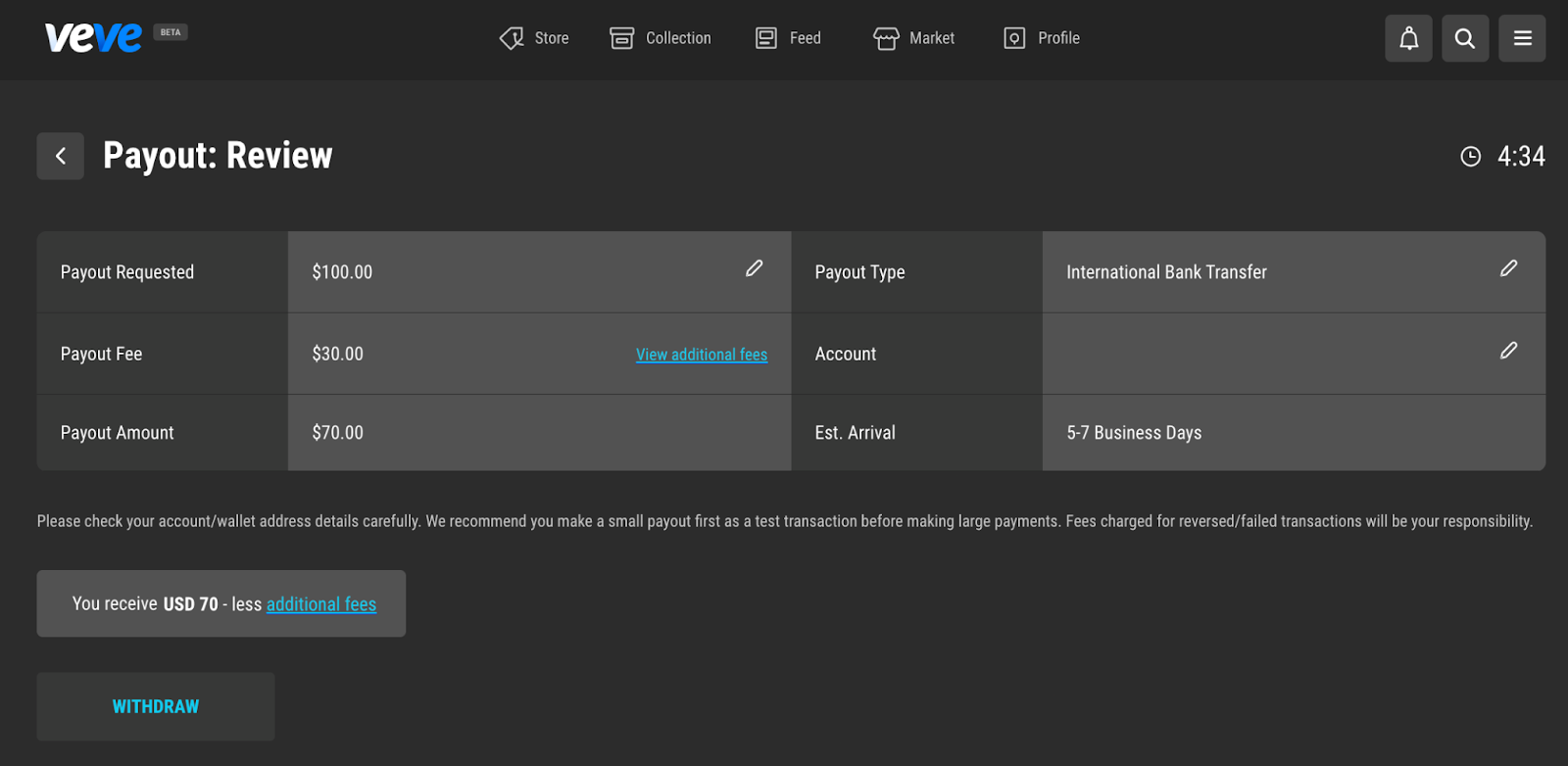 Withdrawals from VeVe are available only to your linked bank account.