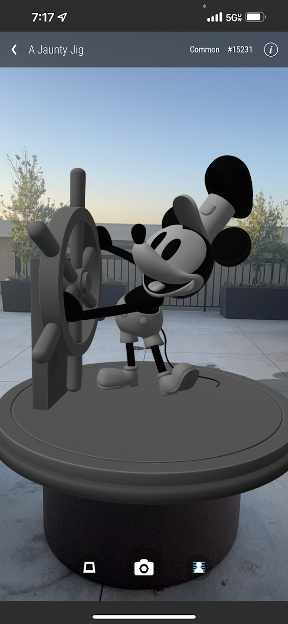 In the ‘Collection” section, click on your collectible. Tap the AR button at the bottom of the screen, and follow the on-screen directions. You’ll be prompted to scan your immediate surroundings so that your collectible can be brought to life!