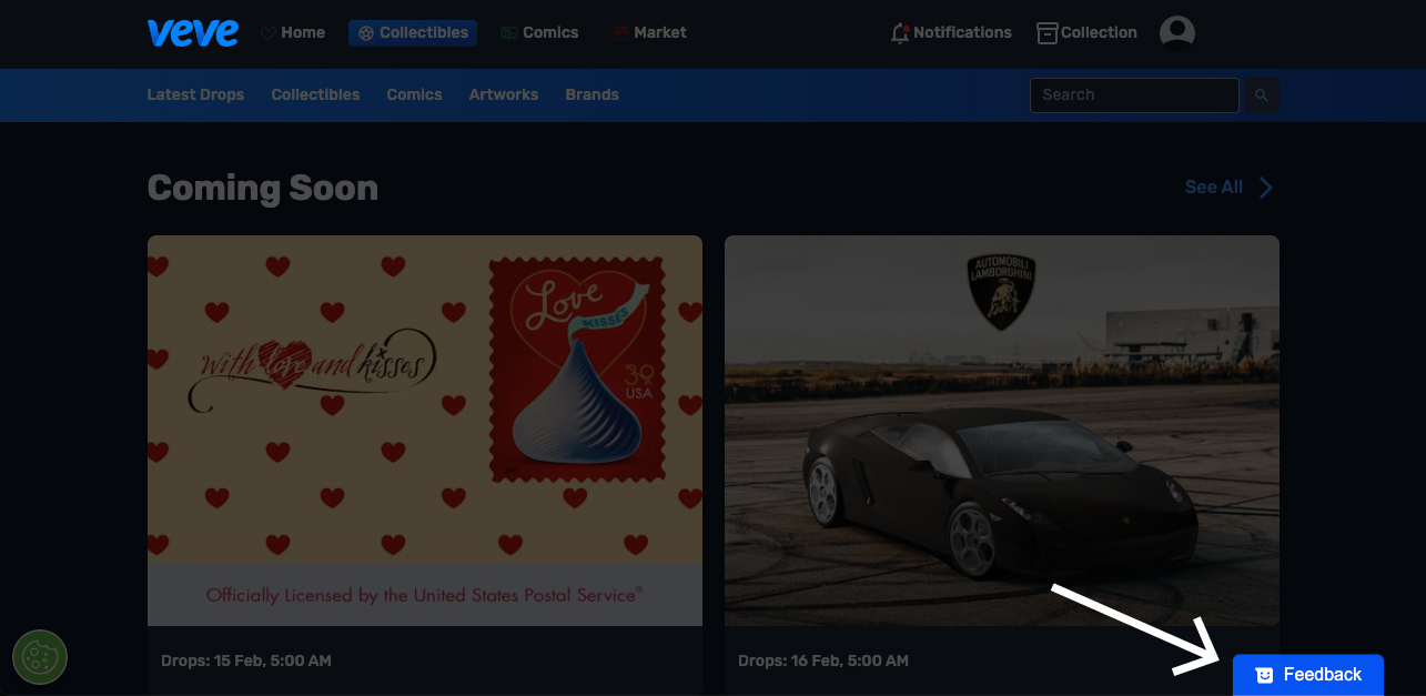 The best way to submit your feedback to the team is with the blue ‘Feedback’ button in the bottom right corner of the web app (https://www.veve.me/collectibles/).